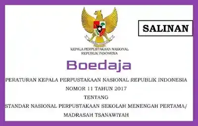 Boedaja - PerKa Perpustakaan Nasional Nomor 11 Tahun 2017 Tentang Standar Nasional Perpustakaan Sekolah Menengah Pertama/ Madrasah Tsanawiyah adalah judul dari informasi regulasi kali ini.